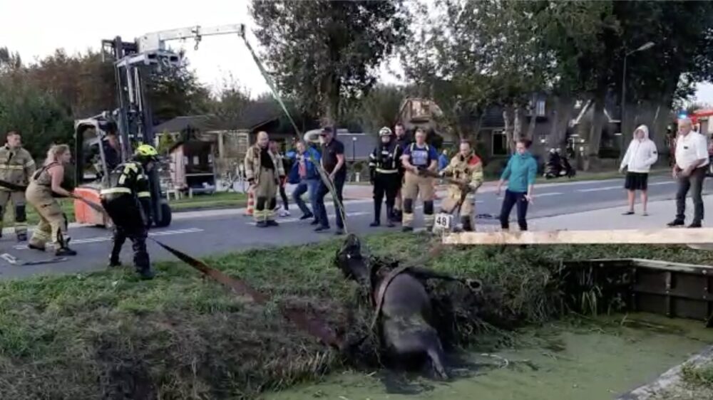 Mooi natuurlijk als een paard lekker de ruimte heeft om te bewegen, maar als 'ie in de sloot klapt dan moet je er wel snel bij zijn. Een aantal dagen geleden gebeurde dit helaas, maar gelukkig schoot deze heftruckchauffeur snel te hulp.