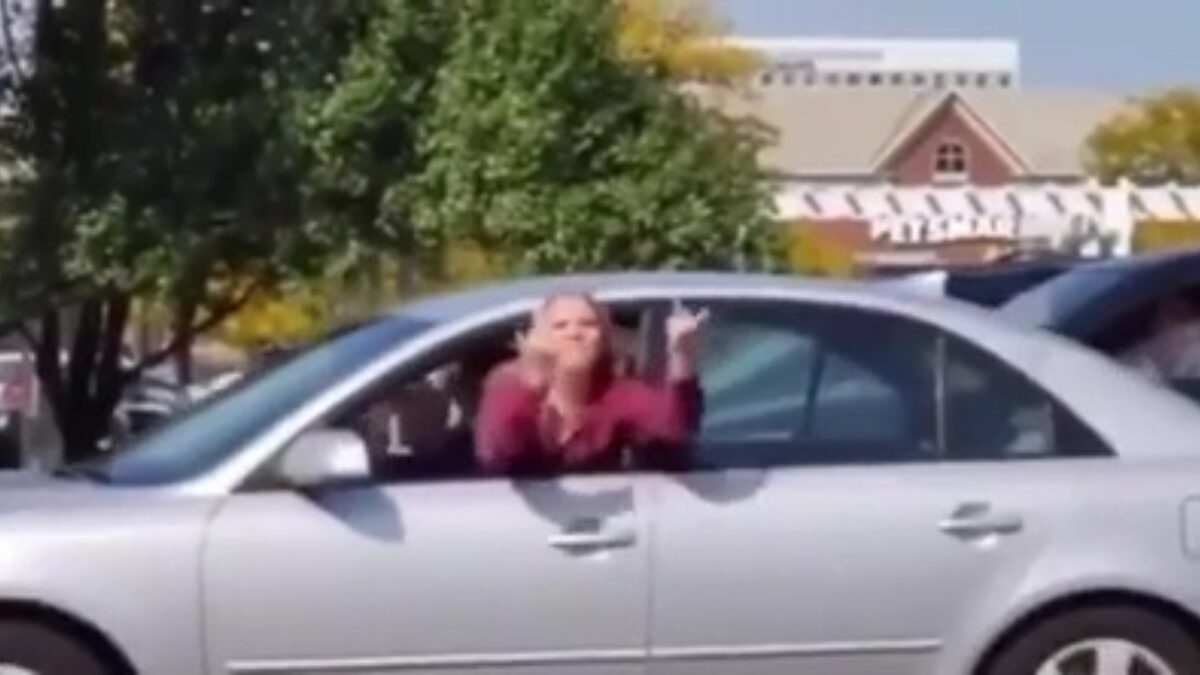 Vrouw zo getriggerd door Trumpfans dat ze haar voorligger aanrijdt