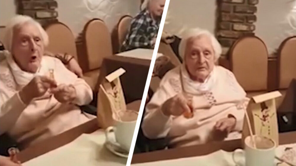 Web classic: dementerende Duitse oma proost op het goede leven