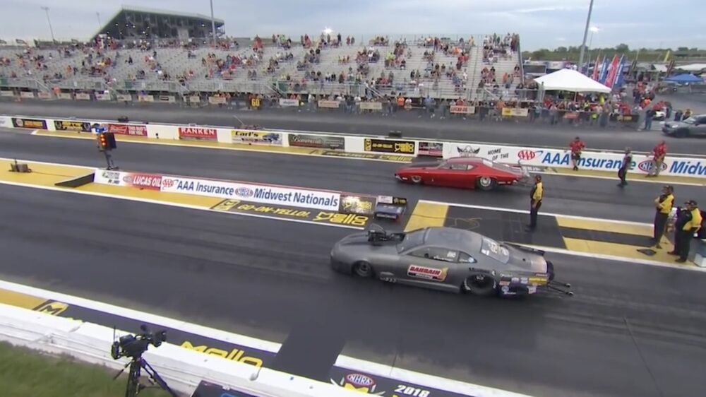 Tijdens het dragracen is het wel zo prettig dat je parachute bij de les blijft, want anders krijg je hetzelfde als Mike bowman and Mike bowman and mike bowman and mike bowman and mike bowman...