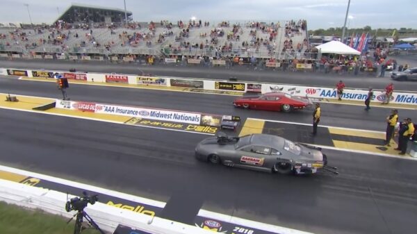 Dragracer vlamt veiligheidsnet in als zijn parachute weigert tijdens het remmen