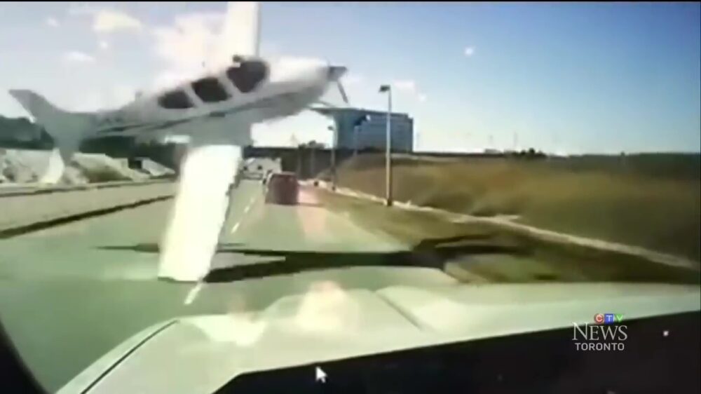 Tijdens een ritje over de snelweg nabij Toronto, Canada moet deze autobestuurder zich compleet de vinketering zijn geschrokken nadat een neerstortende Cirrus SR20 hem op een haar na miste. Tijdens een oefenvlucht ging er iets onbekends mis waarna het vliegtuig hard richting de grond ging. Wonderwel raakte er niemand zwaar gewond, het vliegtuig was echter aan een nieuw neusje toe.