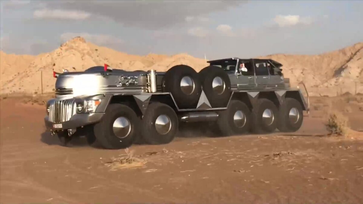 Arabische sjeik rijdt een rondje in zijn nieuwe speeltje
