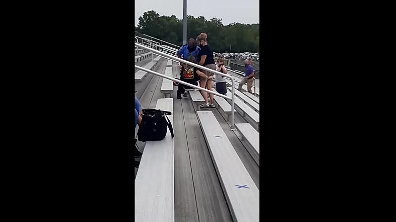 Karen weigert een mondkapje te dragen als ze d'r zoon komt toeschreeuwen tijdens een potje good old American Football. De beveiliging is het hier niet mee eens, want afspraak is afspraak. Dus wie niet luisteren wil moet maar voelen wordt afgevoerd als een Europese hooligan.