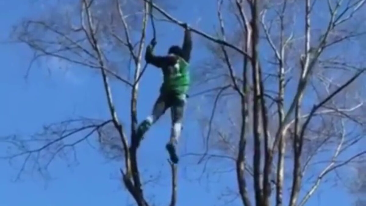 Overmoedige boomklimmer flikkert keihard naar beneden Fails