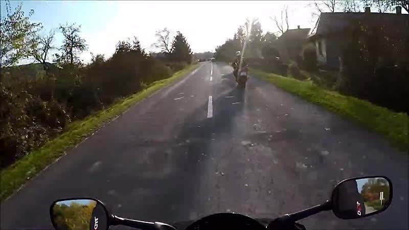 De vrouwelijke stuntpiloot met iets te veel vaart heeft ruzie met een flauwe bocht en eindigt in de berm op haar kantje. Haar vriend straft het incident onmiddellijk af door over haar heen te karren.