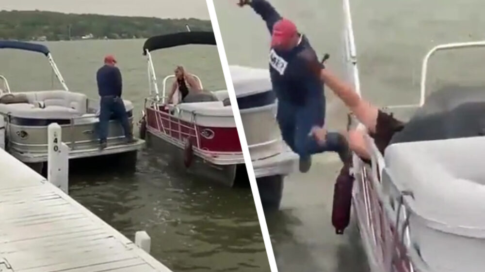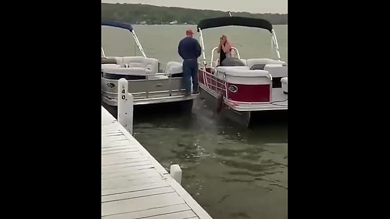 Het leek toch zo'n romantisch idee: een #huwelijksaanzoek waarna je samen 'in het bootje' stapt. Bleek in dit geval toch wat lastig aangezien vrouwlief zo schrok dat ze spontaan iets teveel gas gaf.