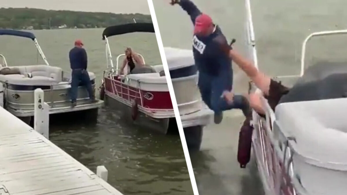 Het leek toch zo'n romantisch idee: een #huwelijksaanzoek waarna je samen 'in het bootje' stapt. Bleek in dit geval toch wat lastig aangezien vrouwlief zo schrok dat ze spontaan iets teveel gas gaf.
