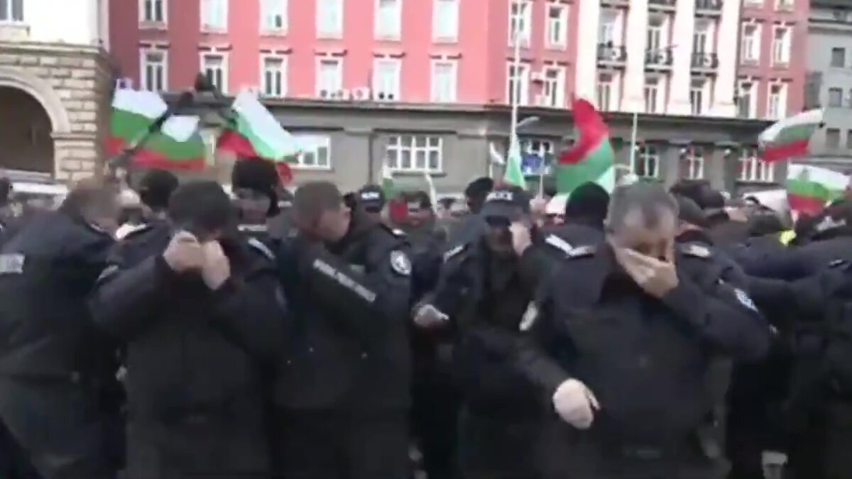 Bulgaarse politieagent peppersprayt per ongeluk zijn hele groep collega's