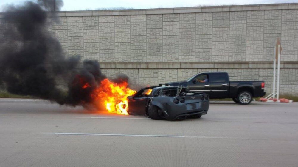 Corvette crasht met 240 km/h tegen betonnen vangrail tijdens een straatrace