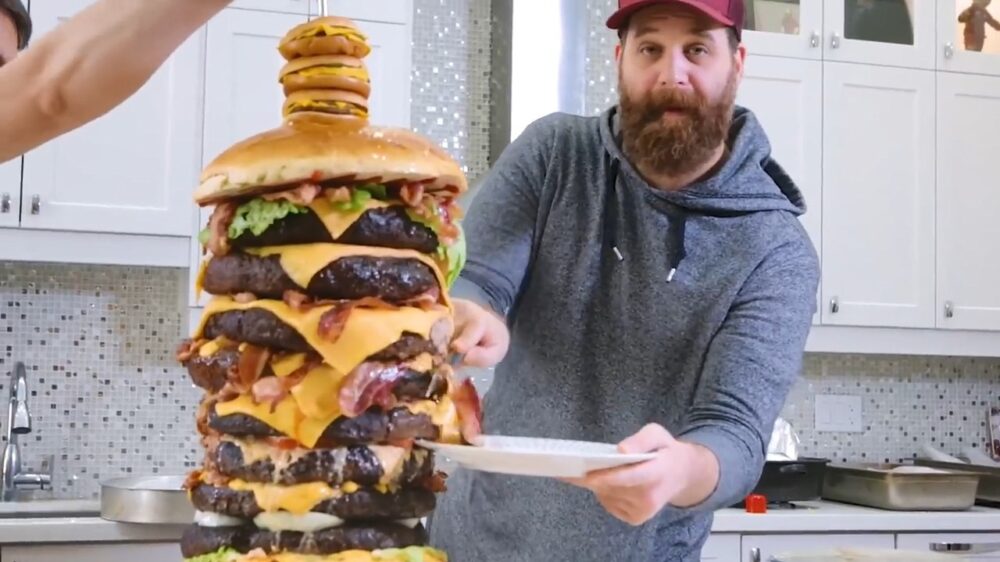 Epic Meal Time maakt een hamburgertoren van 200.000 calorieën!