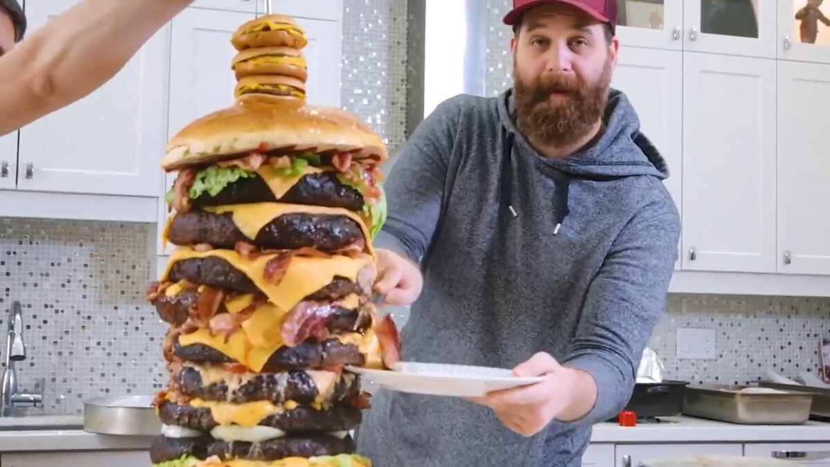 Epic Meal Time maakt een hamburgertoren van 200.000 calorieën!