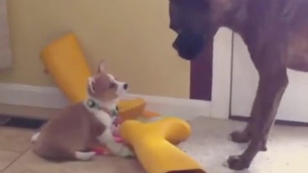 Woefdram jaagt grotere hond weg met bloedstollende blaf Dieren