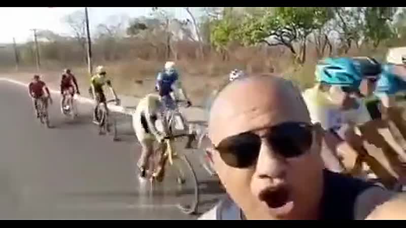 Wielerverslaggever krijgt tijdens zijn reportage een soort van schouderklopje Fun