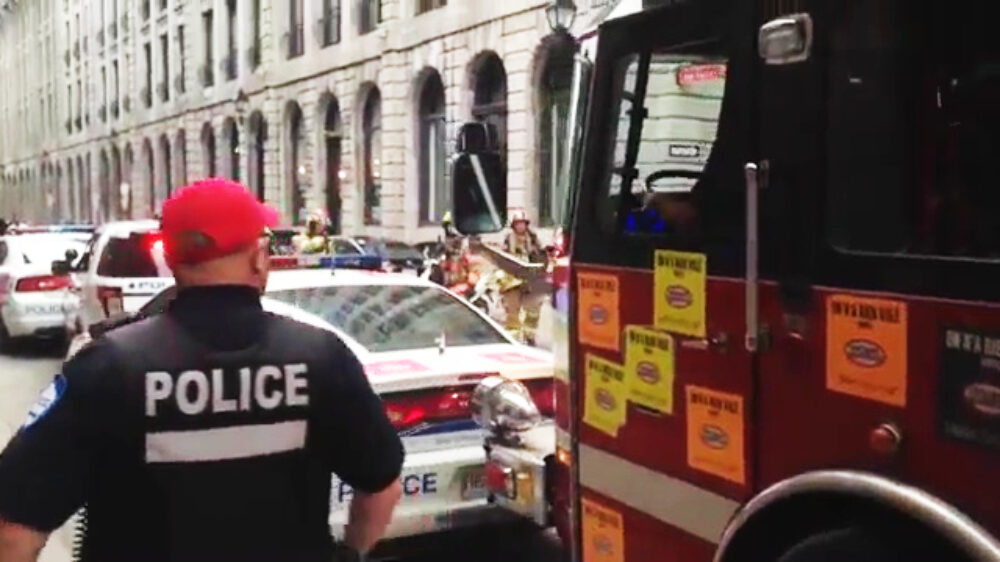 Toch op zijn minst vervelend: er staat een gebouw in de fik maar dankzij geparkeerde auto's kun je daar niet bij. Wat je dan doet? Deze bestuurder van een brandweerauto gaf een aantal jaar geleden in Montreal het goede voorbeeld.