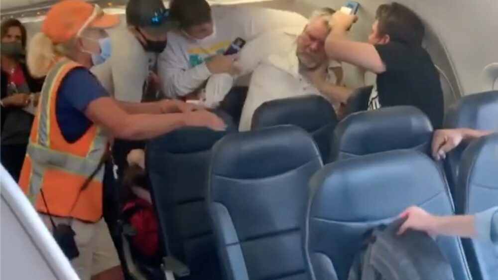 Deze passagier uit Arizona is zo'n type maar had desondanks gewoon zijn vlucht naar Utah gepakt. Een medepassagier sprak hem op de regels aan en dat viel uiteraard niet helemaal lekker bij de antimasker-meneer waarna het fysiek werd.
