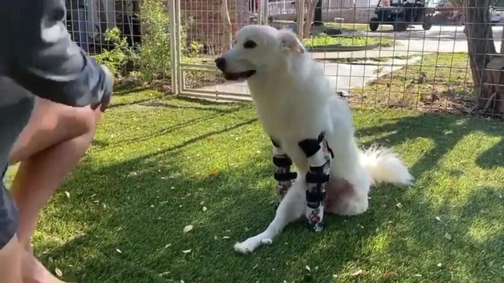 Tijd voor feelgood: hond zet dankzij protheses eindelijk eerste stapjes