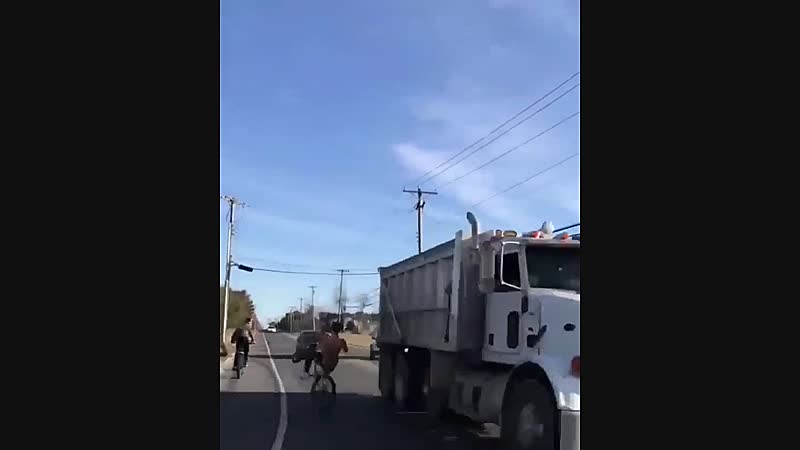 Uitslover doet een wheelie op de autoweg en wordt (gelukkig) geschept Fun