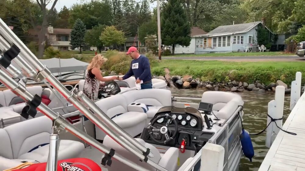 We konden vorige week zien hoe een romantisch huwelijksaanzoek compleet in het, hou je vast... water viel als de vrouw per ongeluk iets teveel gas geeft. Op deze nieuwe beelden die, komt 'ie... boven water gekomen zijn is nog beter te zien hoe het fout gaat.