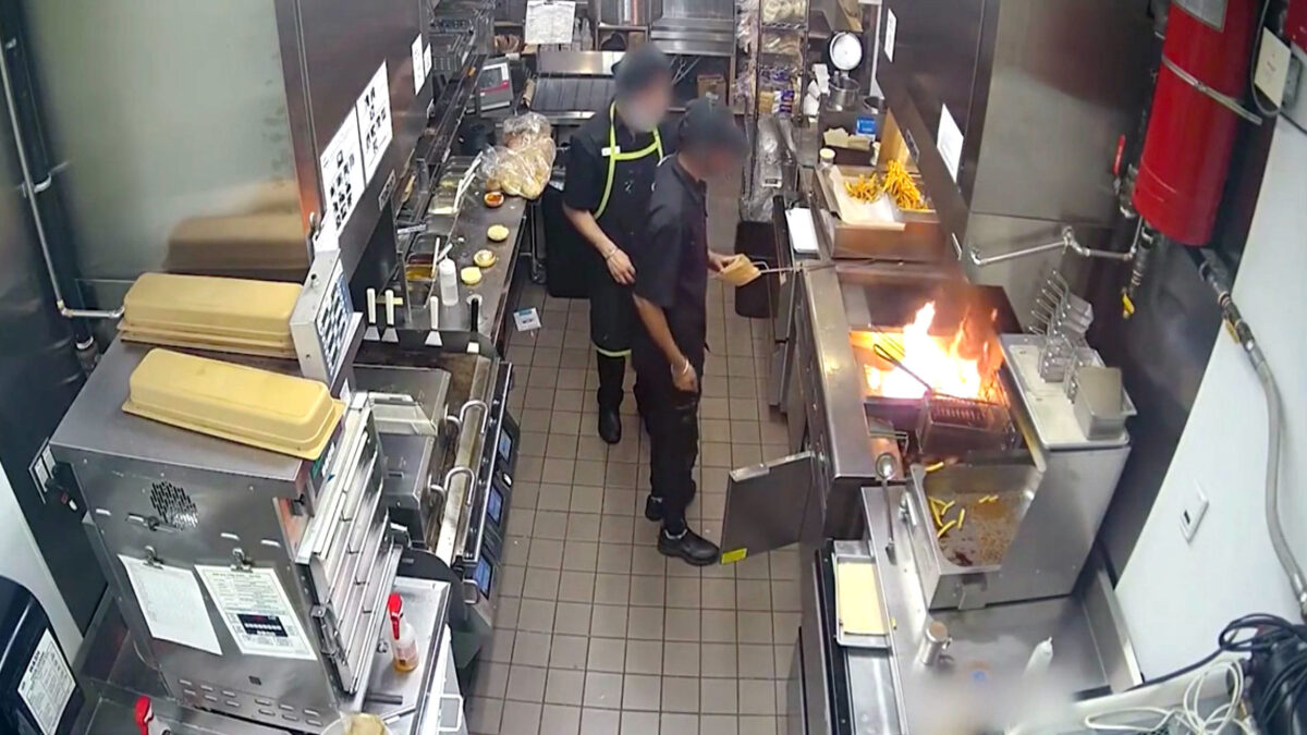 Helder licht besluit brandend vet met een sloot water te blussen Fails