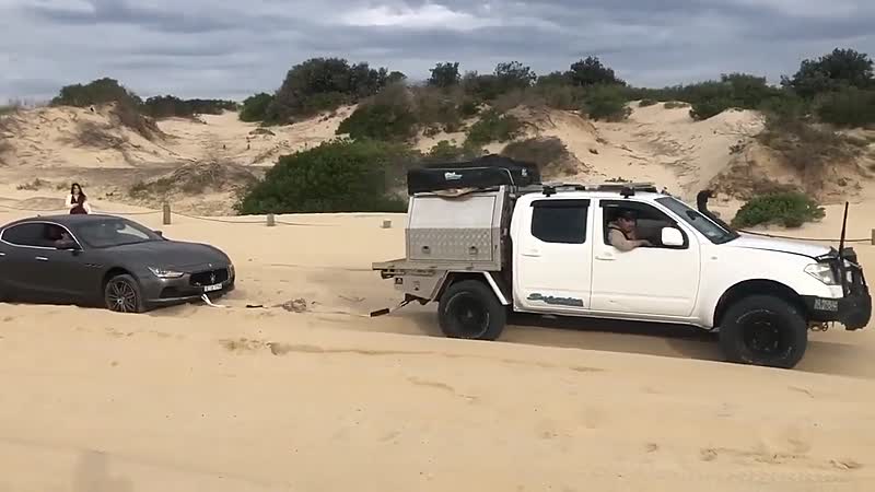 De meeste mensen hebben wel het benul dat als ze een auto slepen, ze niet als een malle weg moeten jagen maar langzaam de kabel op spanning moeten laten komen en voorzichtig weg moeten rijden. Deze sleepkneus niet, en als extra pech betreft het ook geen lullig autootje maar een dikke Maserati.