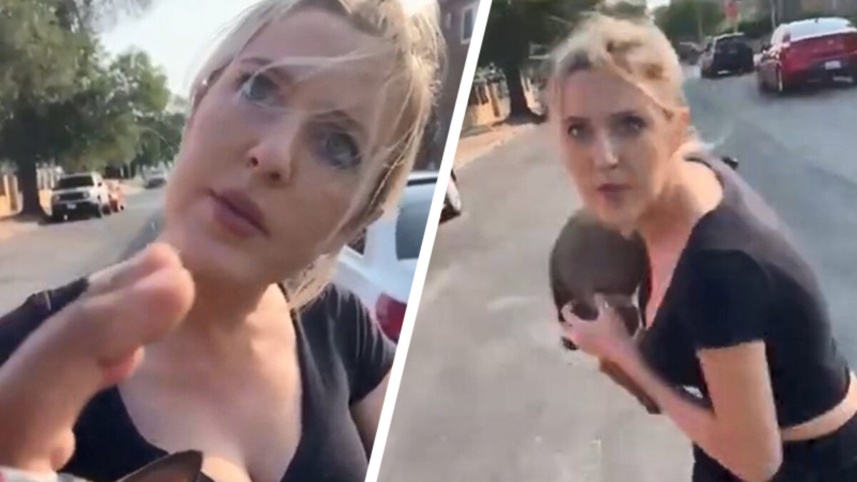 Een vrouw uit Californië werd door een man aangesproken op de manier waarop ze haar puppy vasthield - als het überhaupt al haar eigen hond is - en daar bleek ze niet echt gediend van te zijn. Na een rant waar geen touw aan vast te knopen valt, vraagt hij zich terecht af of het wel haar eigen hond waarna ze besluit het beestje door de lucht te gooien.