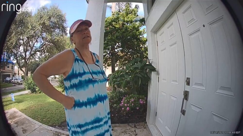 Boze buurvrouw Karen eist dat ze hun Biden/Harris-bord uit hun voortuin halen anders zwaait er wat verdomme.