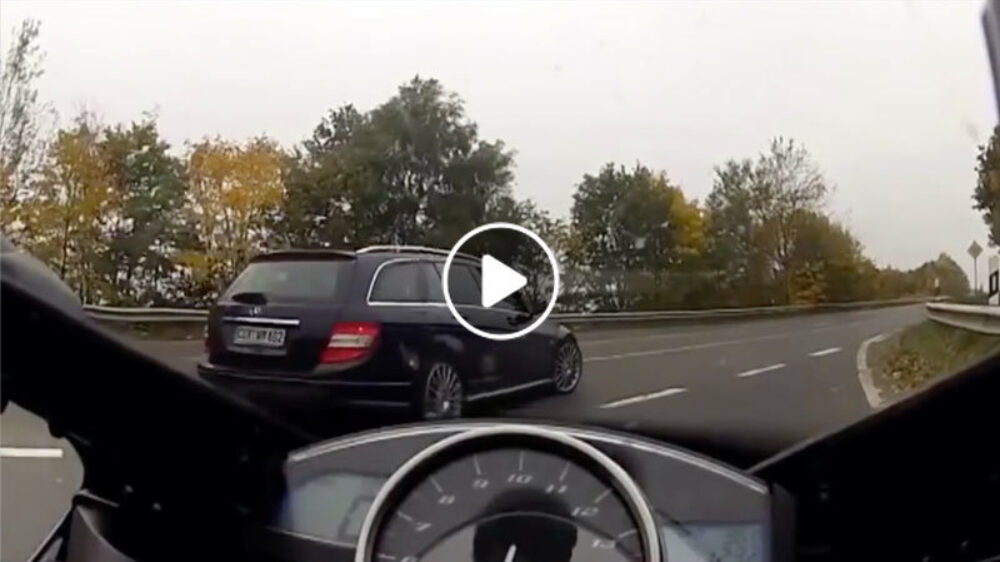 De Duitse autobahn is uitermate geschikt voor snelheidsduivels die het maximale van hun auto of motor eens willen bereiken. Deden de bestuurders van deze Mercedes C63 AMG en deze Yamaha YZF-R1 ook, en zij maakten er een paar jaar geleden een prima straatraceje van. Met zo'n 300 kilometer per uur.