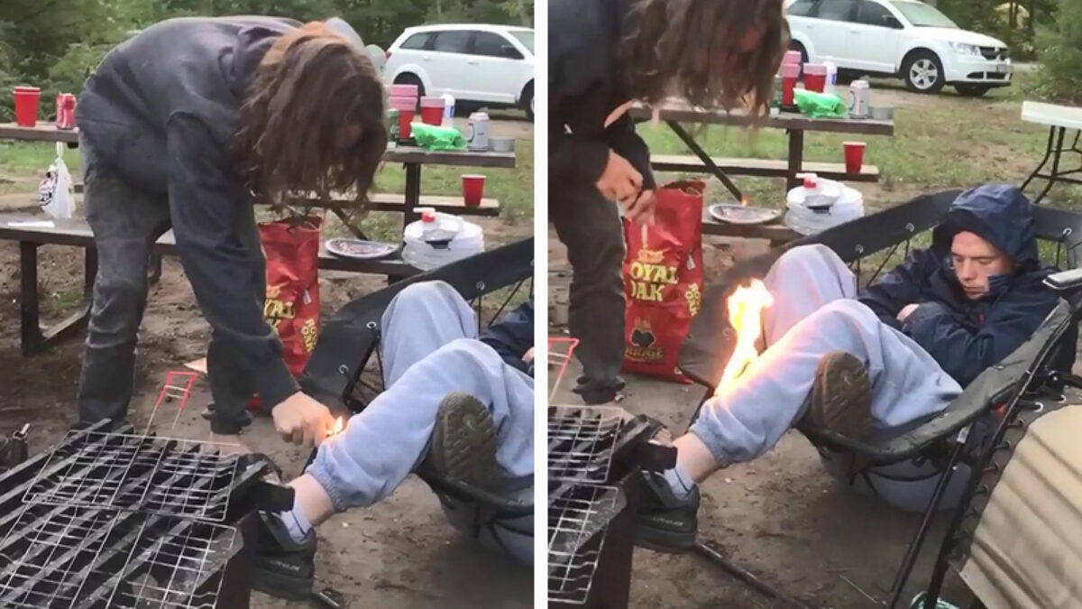 Je vriend wakker maken door zijn broek in de hens te zetten