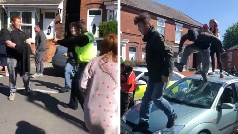 Engelse Tokkies hebben schijt aan politieagent en slopen auto compleet!