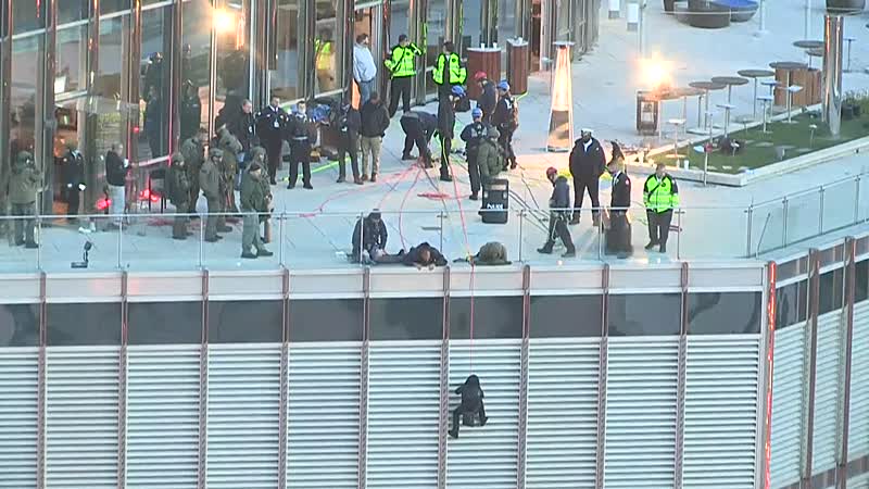Een redelijk bizar tafereel aan de #Trump Tower in Chicago. Daar hing een Black Lives Matter-demonstrant aan een touw aan de zijkant van het gebouw, en als 'ie niet met Trump zelf mocht praten zou 'ie zichzelf naar beneden laten vallen. Zo stoer bleek hij echter niet te zijn, want alhoewel er geen gesprek met Trump is geweest zit de man nu veilig achter slot en grendel.