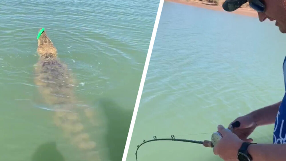 Australische visser heeft een joekel van een krokodil aan zijn lijn