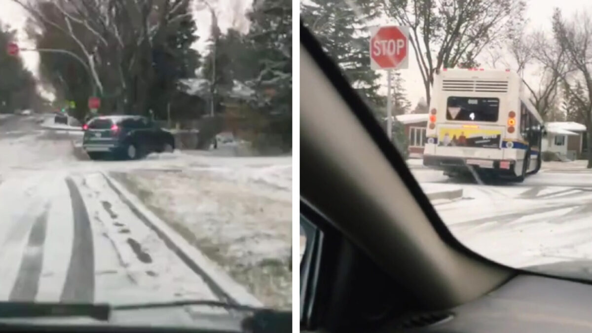 Als het buiten sneeuwt en je je verveelt kun je altijd gaan staan filmen op een spekgladde kruising. Bel de wouten!