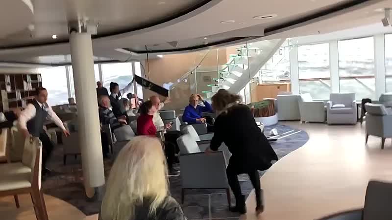 Bejaarden worden van links naar rechts geslingerd op een Noors cruiseschip
