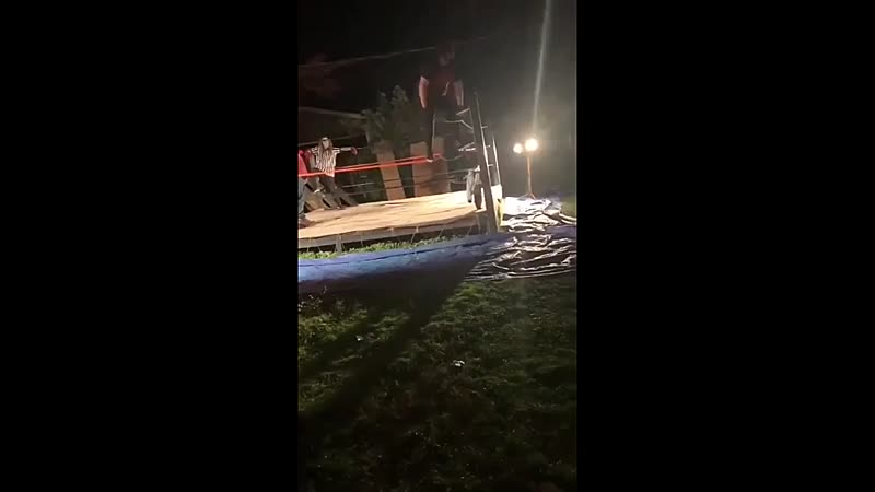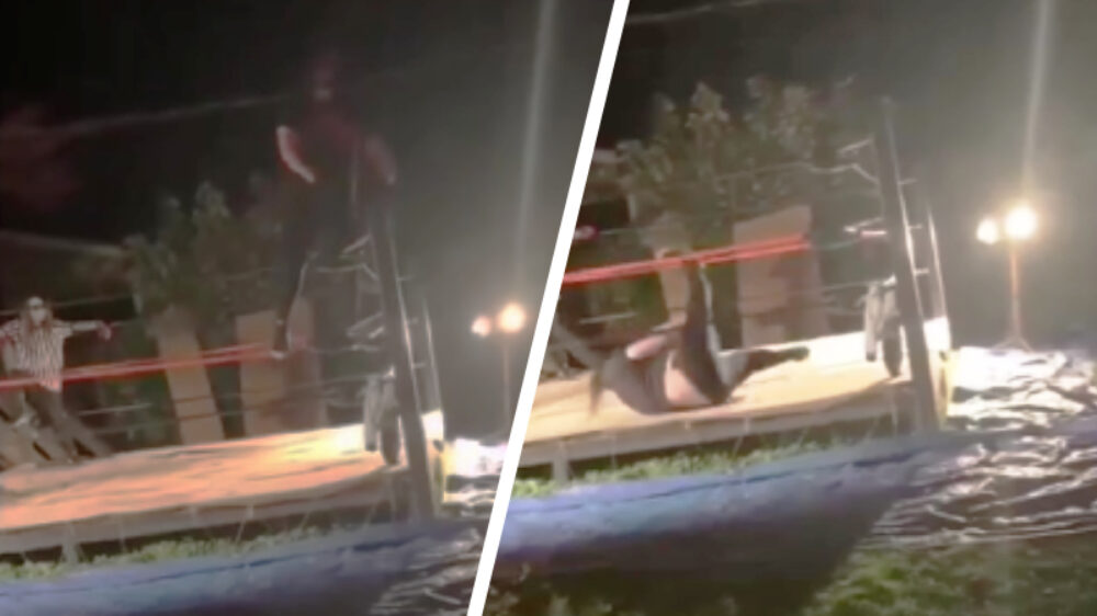 Amateurworstelaar vouwt zijn benen nogal onnatuurlijk de verkeerde kant op