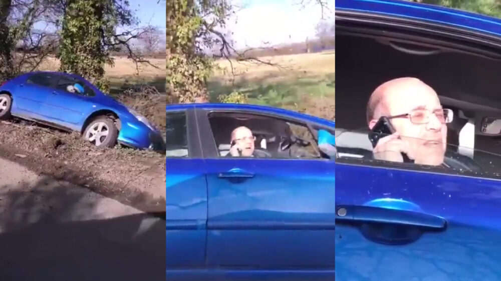 Beleefde Brit parkeert zijn auto doodleuk in een greppel Fails