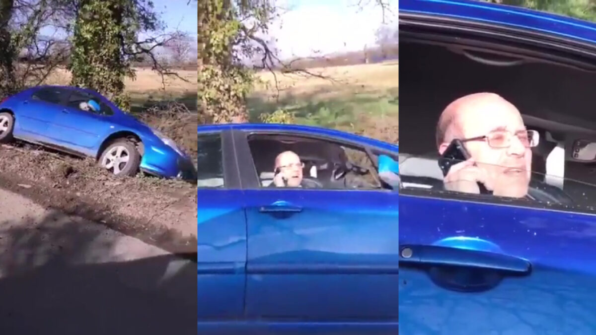 Beleefde Brit parkeert zijn auto doodleuk in een greppel Fails