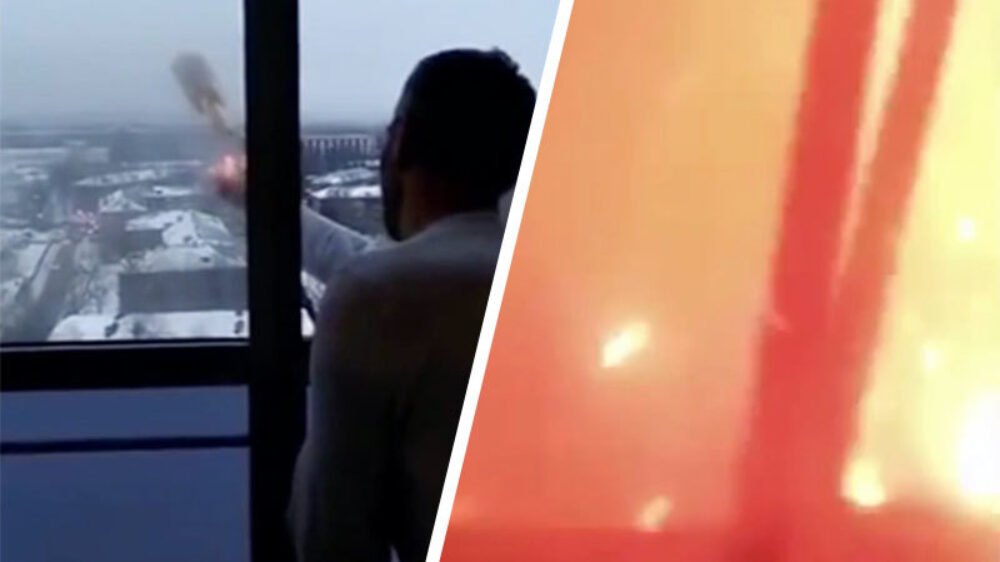 Russisch rund blaast zijn ramen eruit met een vuurwerkje