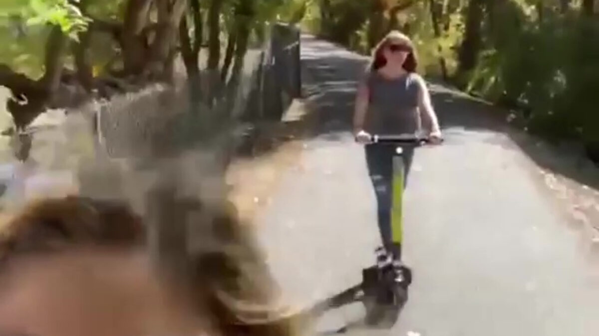 Op een elektrische step moet je extra goed op de weg letten Fails