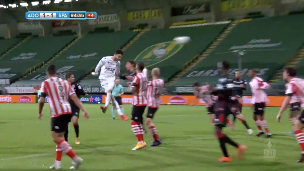 Als je in en thuiswedstrijd in 94' minuut tegen een 1-0 achterstand aankijkt dan is er vaak weinig hoop, maar gelukkig heeft ADO keeper Luuk Koopmans onder de lat staan en die kan blijkbaar ook prima koppen! (via)