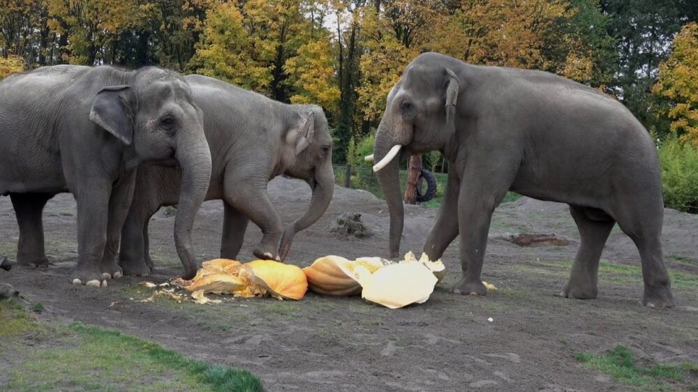 Feelgood op je bakkes: olifanten eten en pletten reusachtige pompoenen