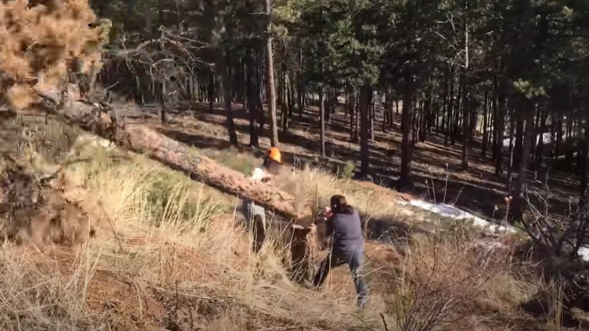 Omgezaagde boomstam maakt een smerige overtreding op houthakker Fails