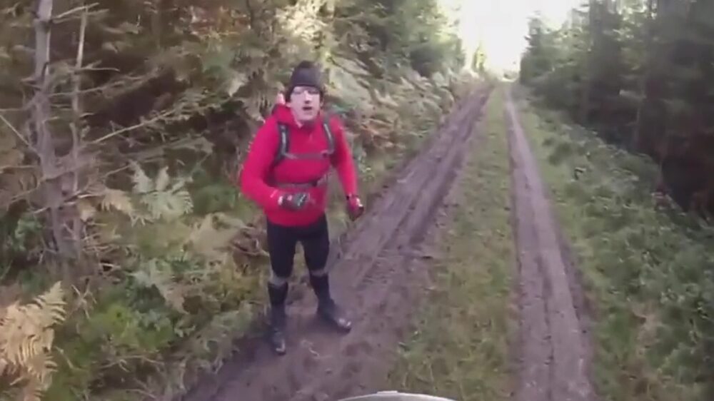 Zeurend gekkie krijgt poffer op zijn neus van een motorrijder