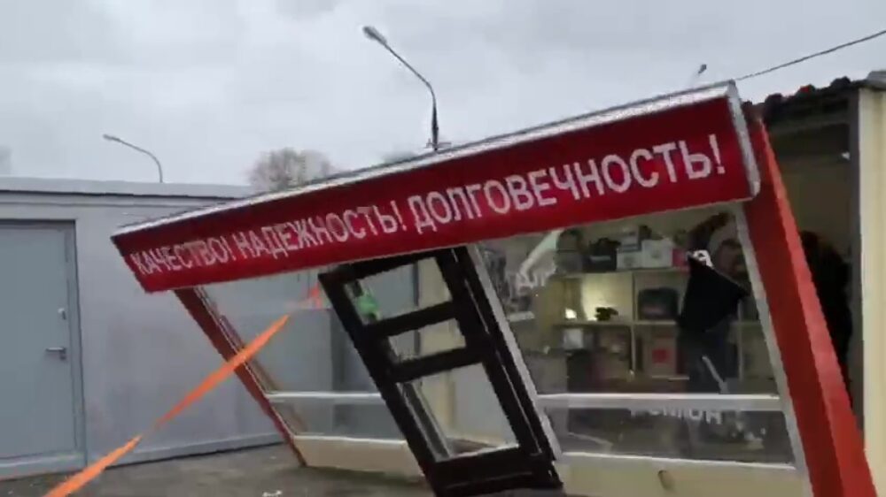 Agressieve klant rukt complete gevel van winkel