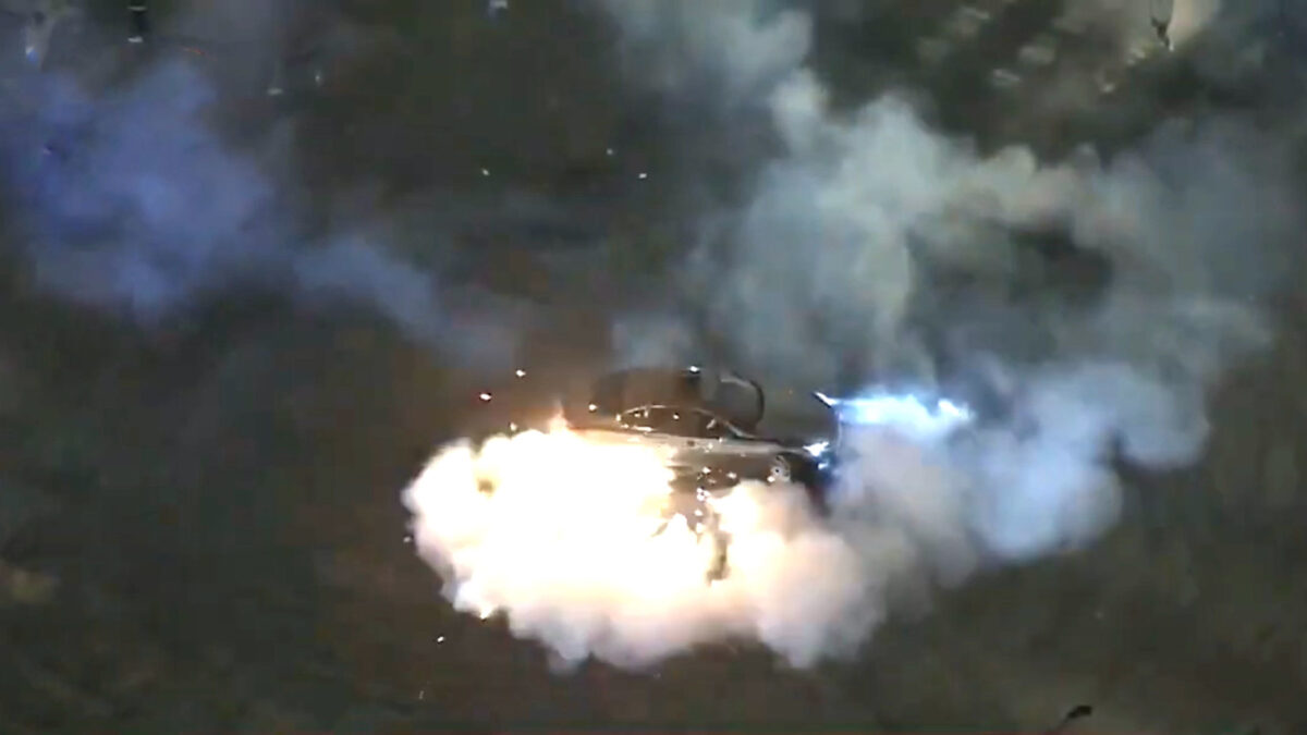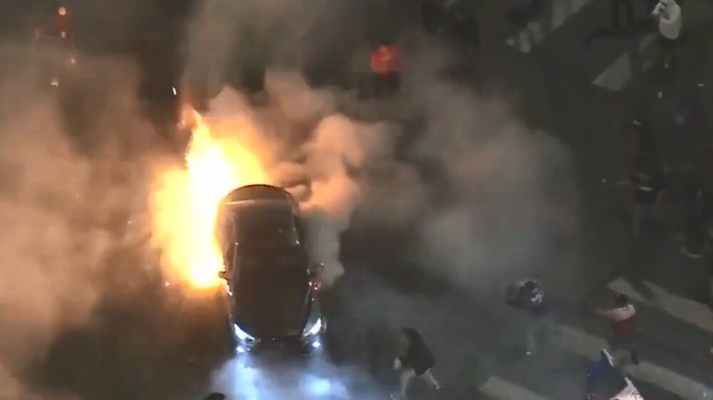 Spuit 11 zet auto in de fik door donuts over vuurwerk te maken