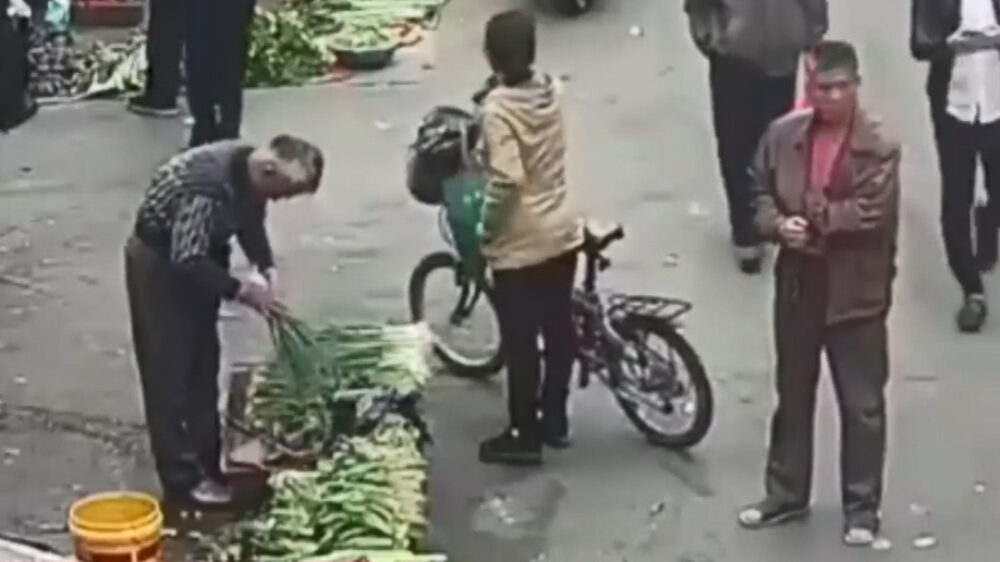Chinees gebruikt zijn eetstokjes om een telefoon te jatten