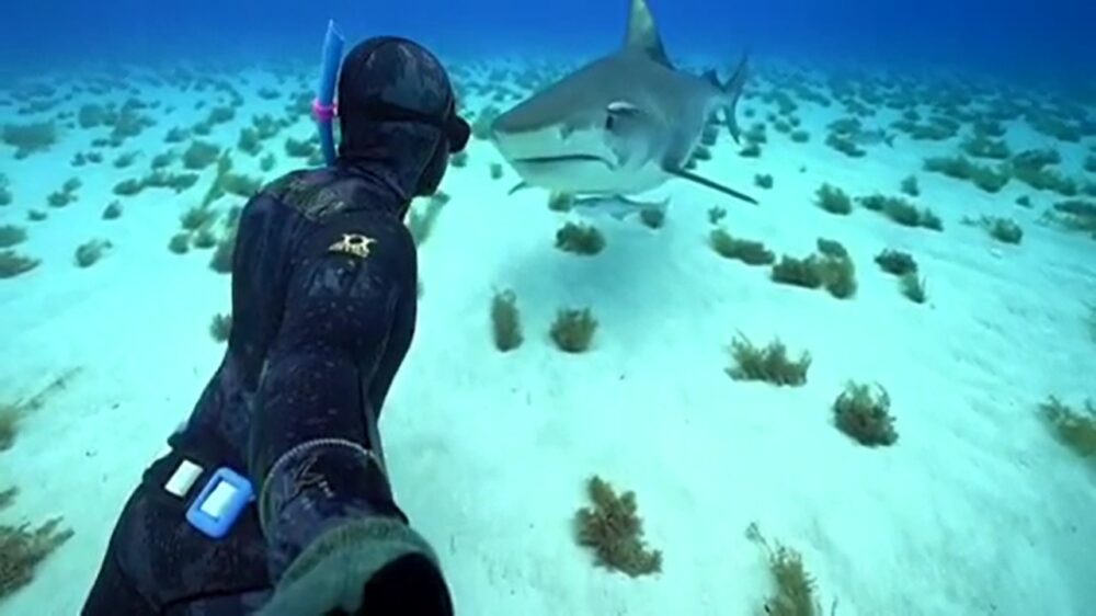 Duiker is bepaald niet onder de indruk als een haai voor zijn neus staat