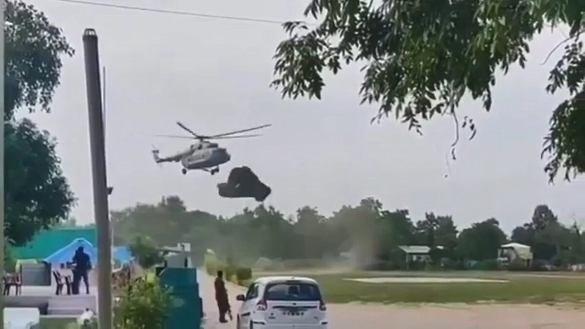 Een helikopter in India krijgt tijdens het landen te maken met een dekzeil tussen zijn rotoren en besluit er korte metten mee te maken. Chopper wordt shredder.