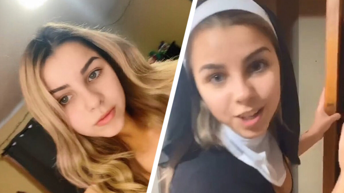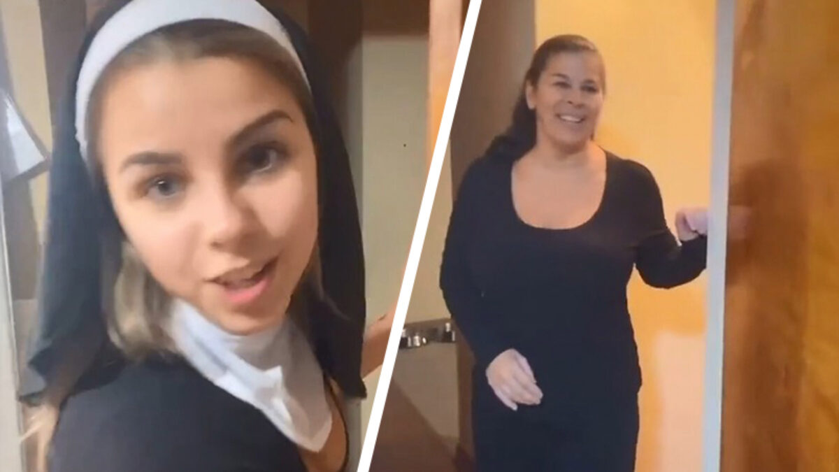 Deze 18-jarige TikTokker probeert een reactie uit te lokken bij haar moeder en onthult haar nonnenkostuum. Hoewel mama het niet goedkeurt lijkt ze toch ook, net als wij, enigszins onder de indruk te zijn.