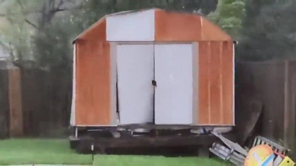 Windkracht 612 blaast tuinhuisje compleet van zijn sokken